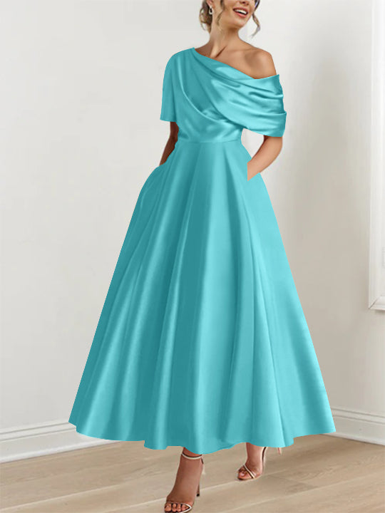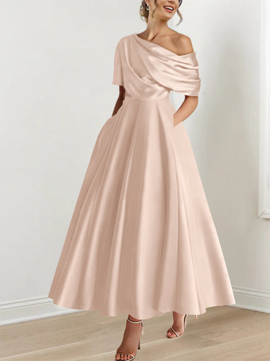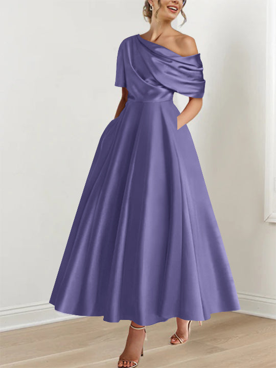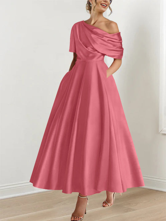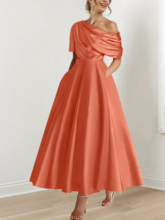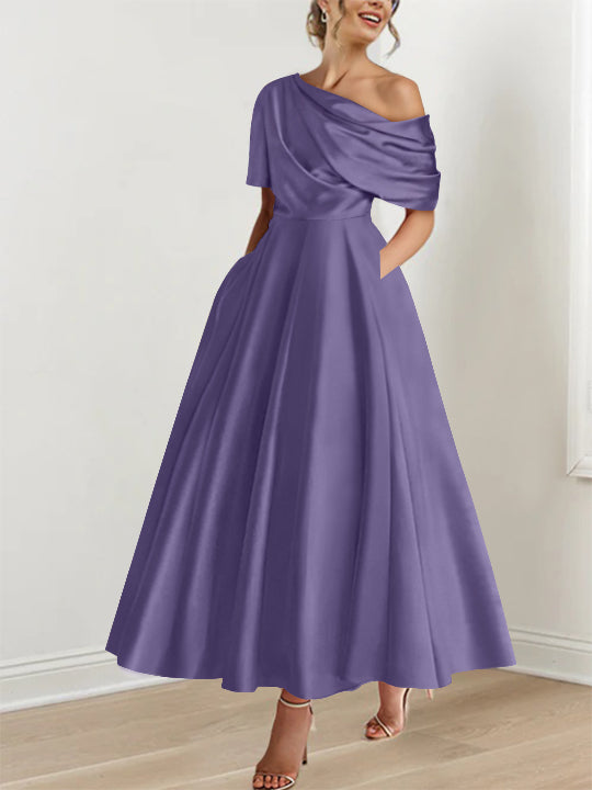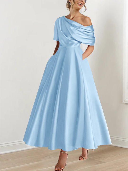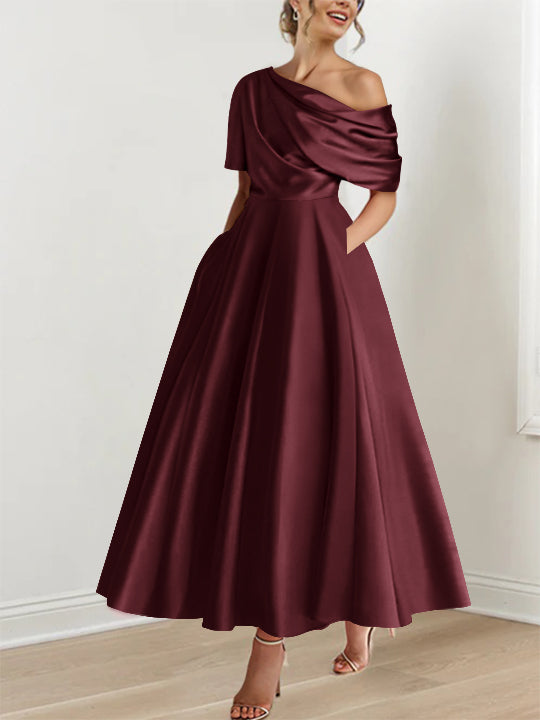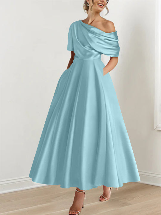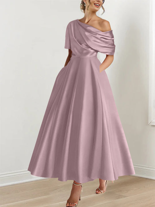 • A-Line/Princess One-shoulder Half Sleeve Ankle-Length Mother of the Bride Dresses with Ruffles