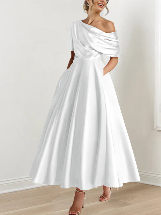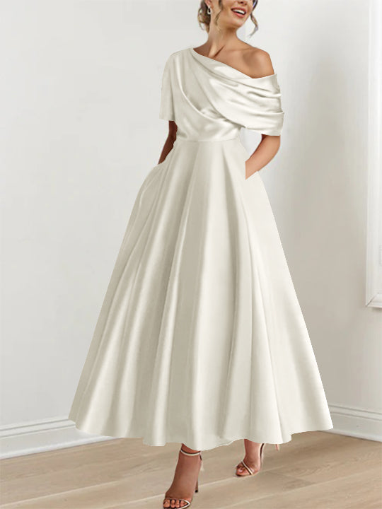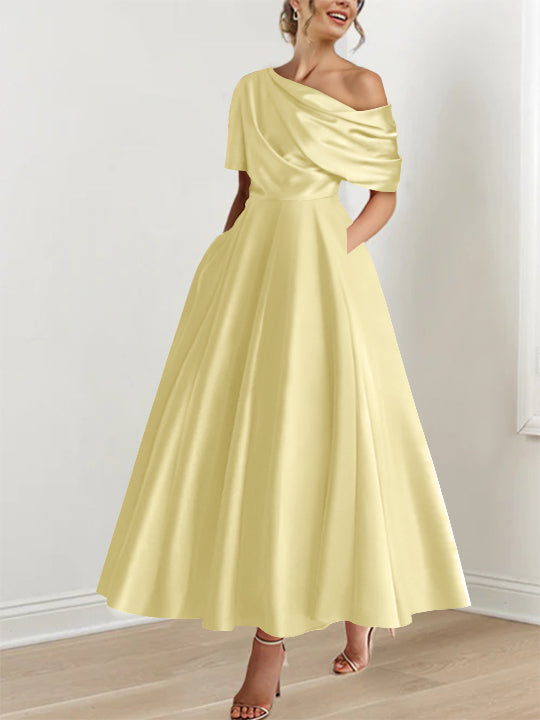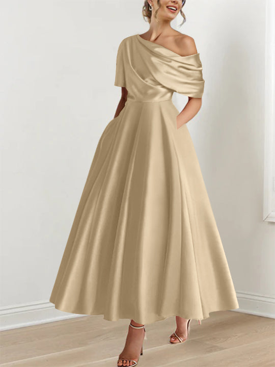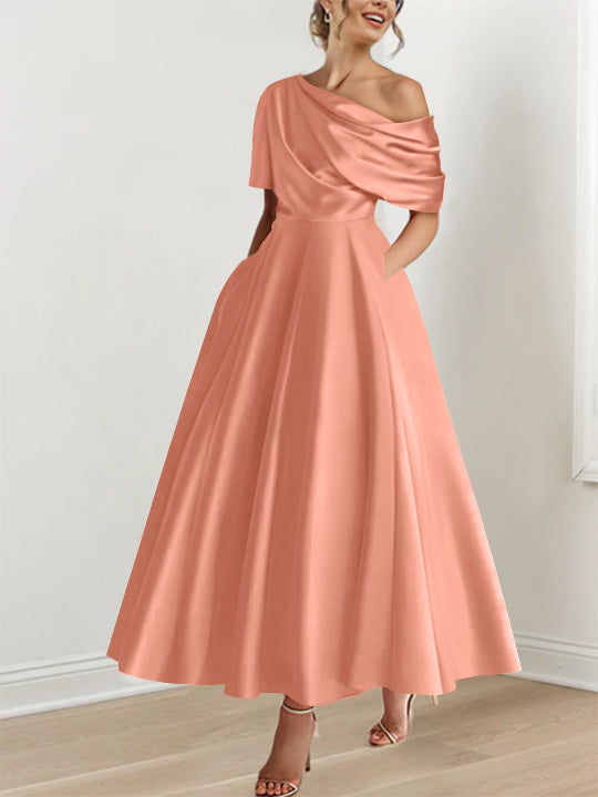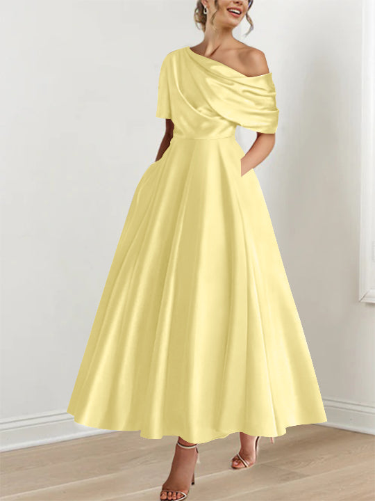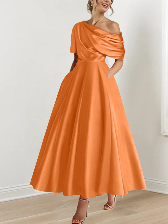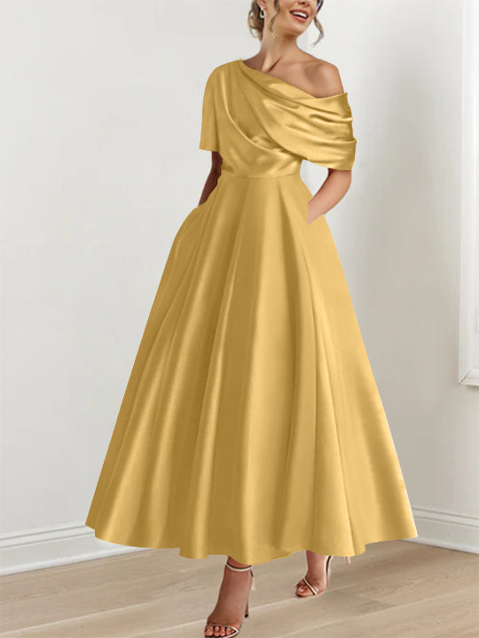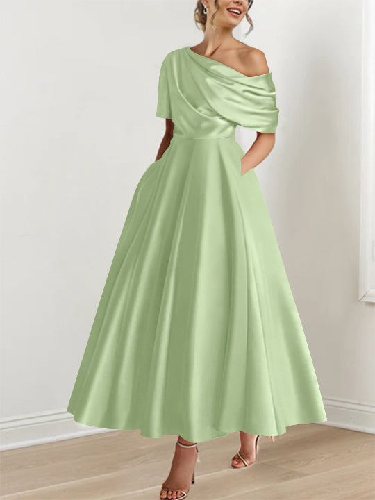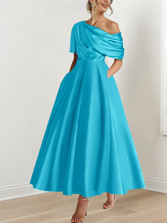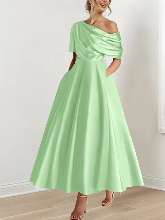 • A-Line/Princess One-shoulder Half Sleeve Ankle-Length Mother of the Bride Dresses with Ruffles
