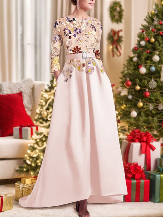 • A-Line/Princess Scoop 3/4 Sleeves Asymmetrical Mother of the Bride Dresses with Appliques Lace