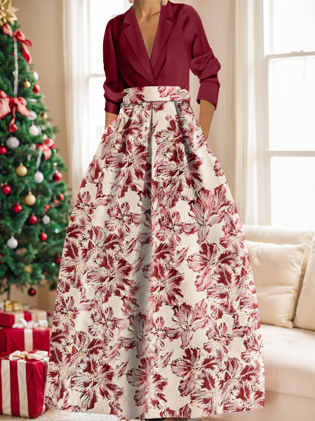 • A-Line/Princess Shirt Collar 3/4 Sleeves Printed Flower Mother of the Bride & Groom Dresses