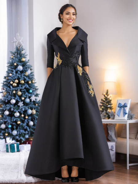 • A-Line/Princess V-Neck Long Sleeves Floor Length Mother of the Bride Dresses With Appliques & Beading