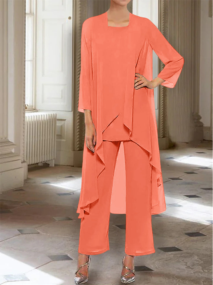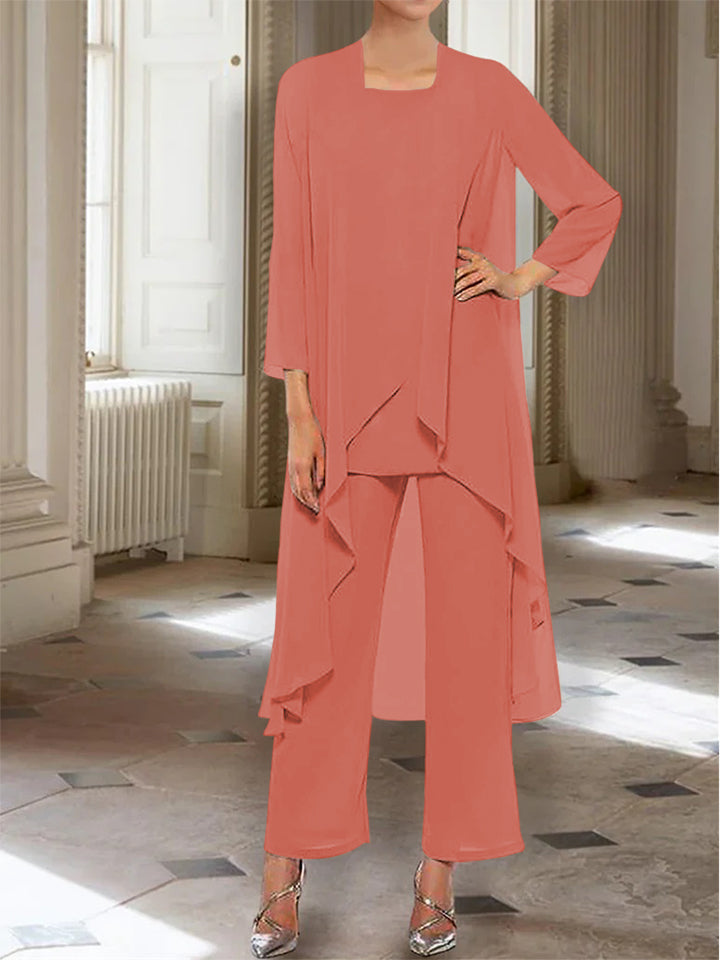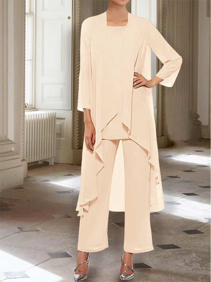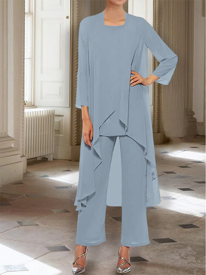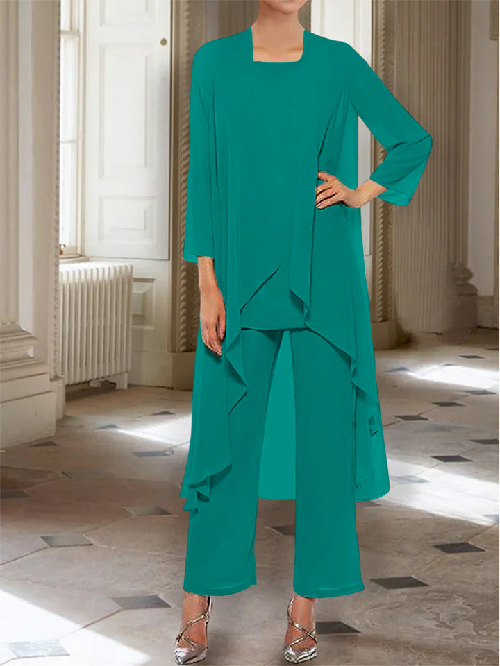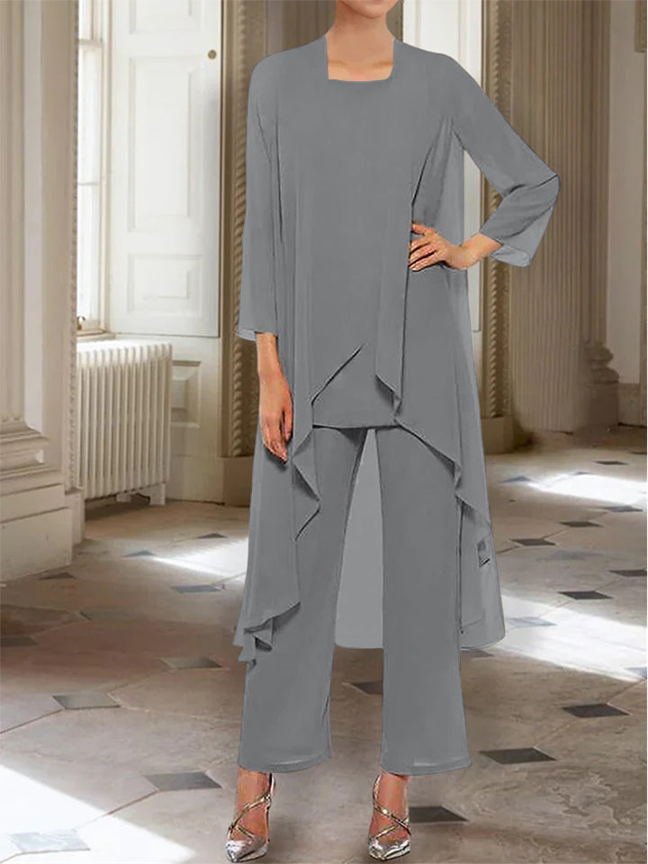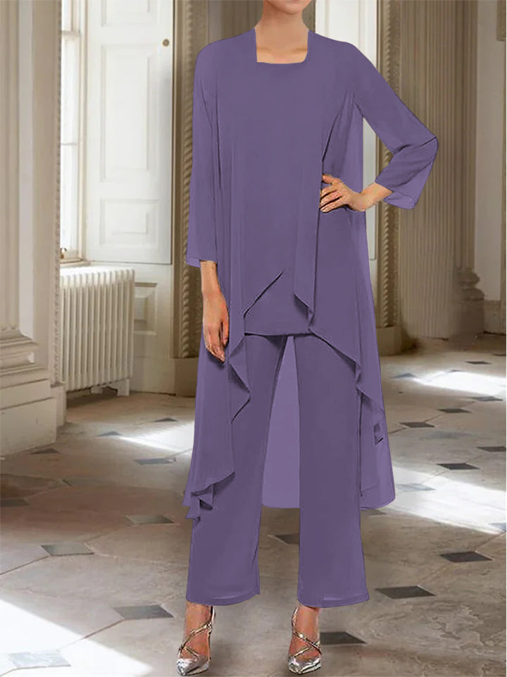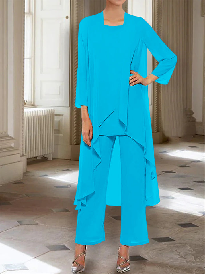 • Chiffon Round Neck 3/4 Length Sleeves Ankle-Length Mother of the Bride Pantsuits with Jacket