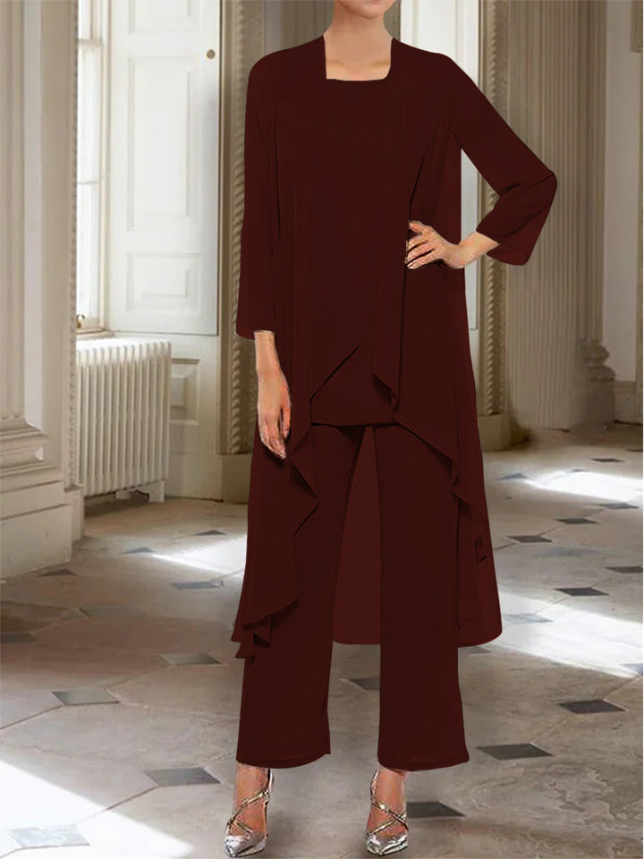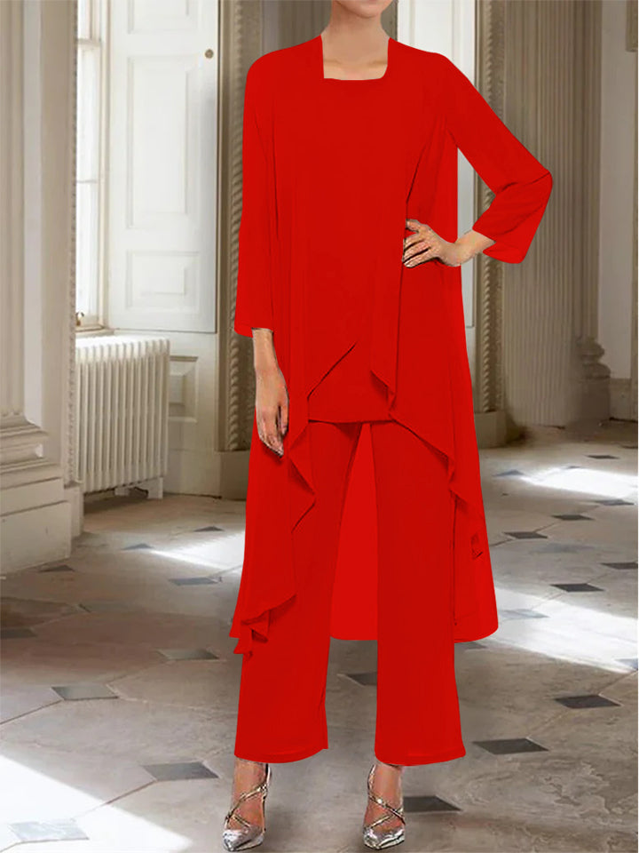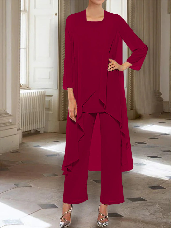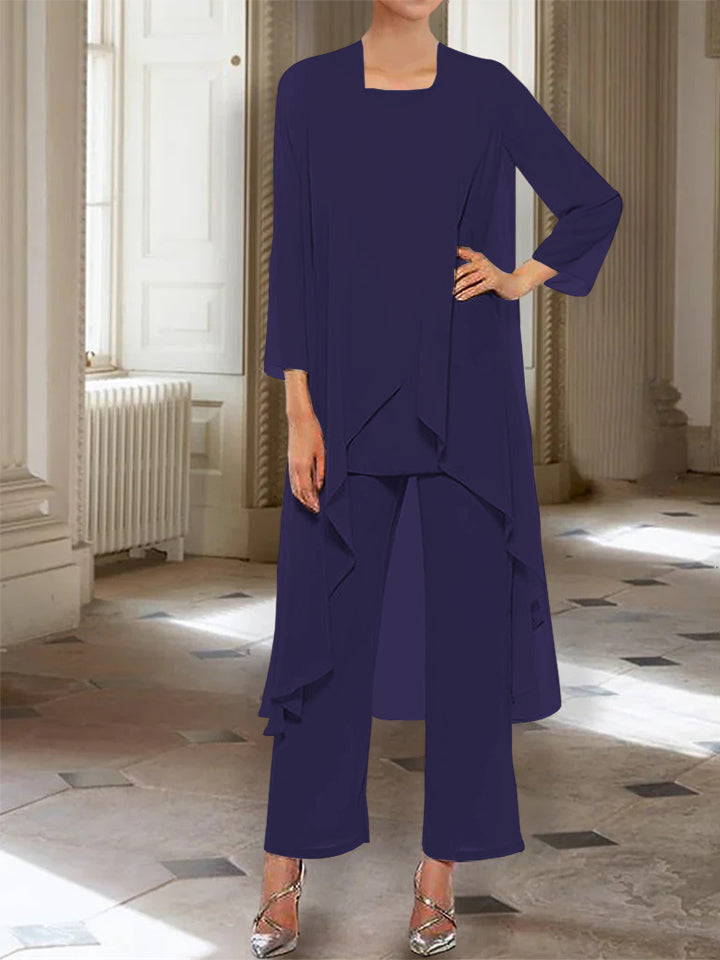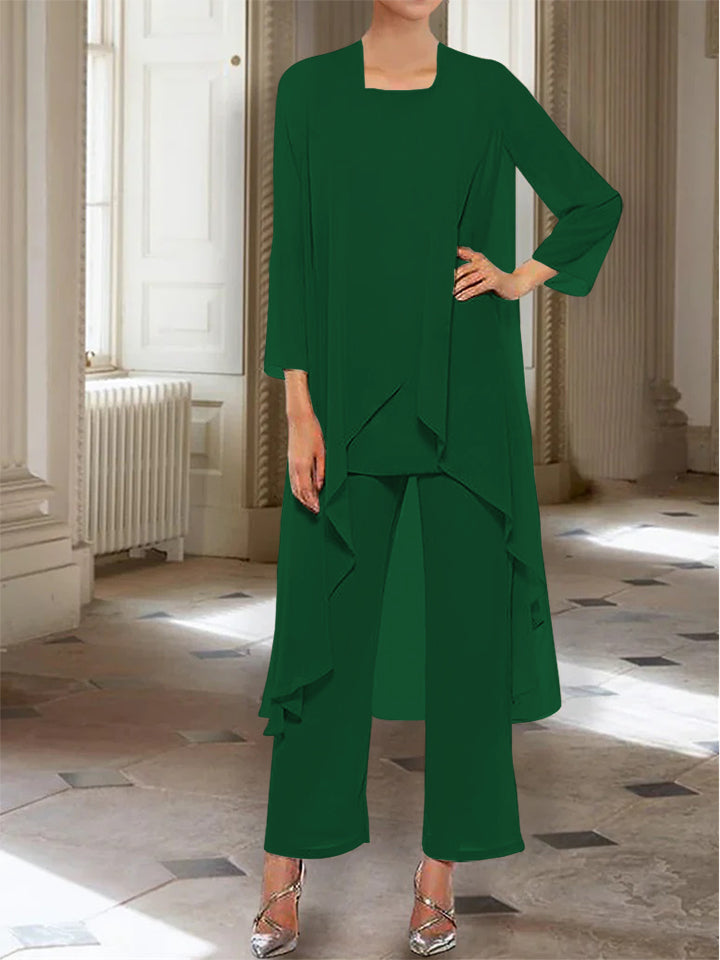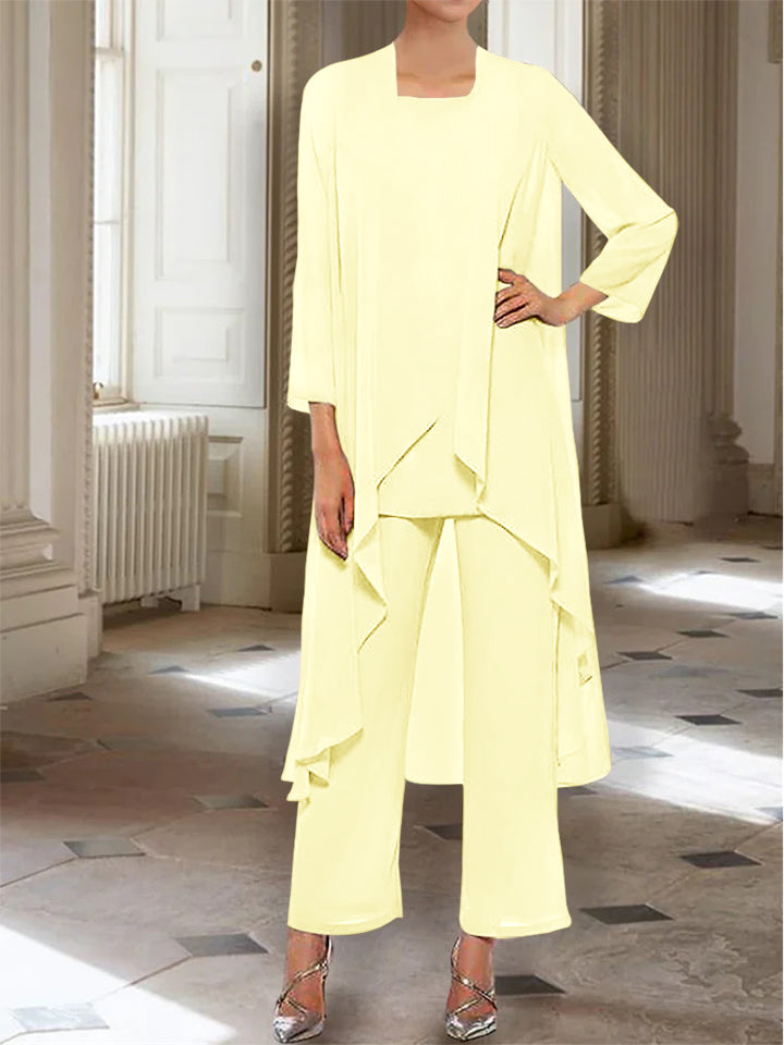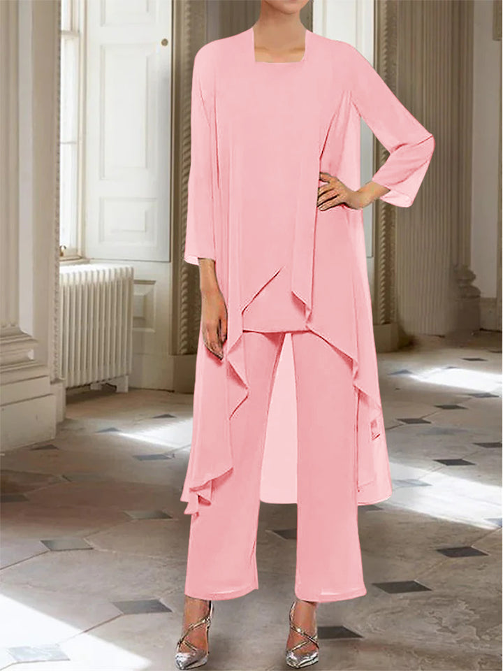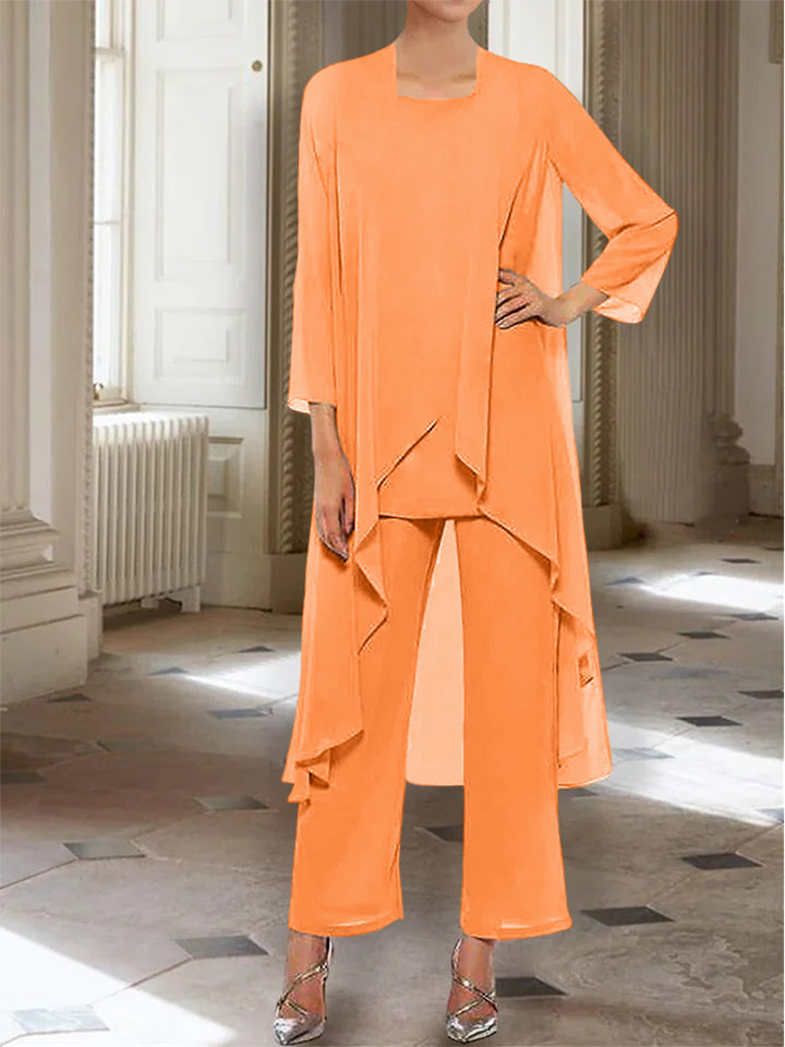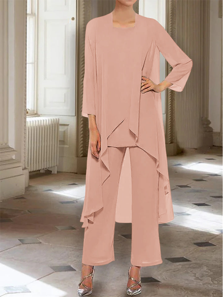 • Chiffon Round Neck 3/4 Length Sleeves Ankle-Length Mother of the Bride Pantsuits with Jacket