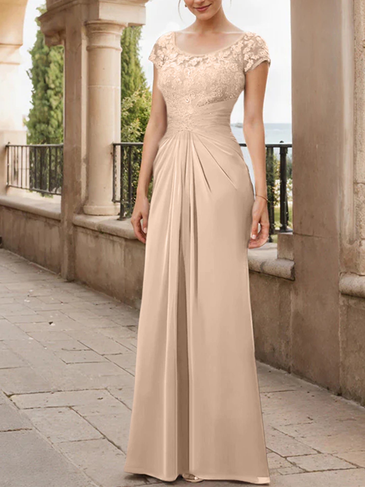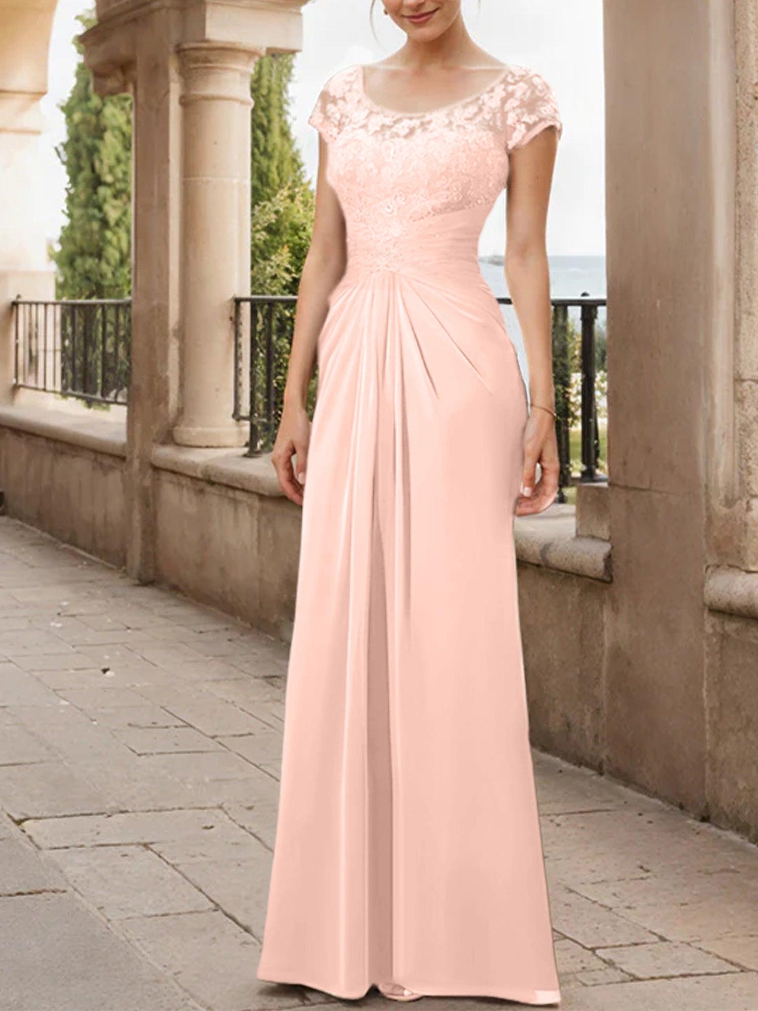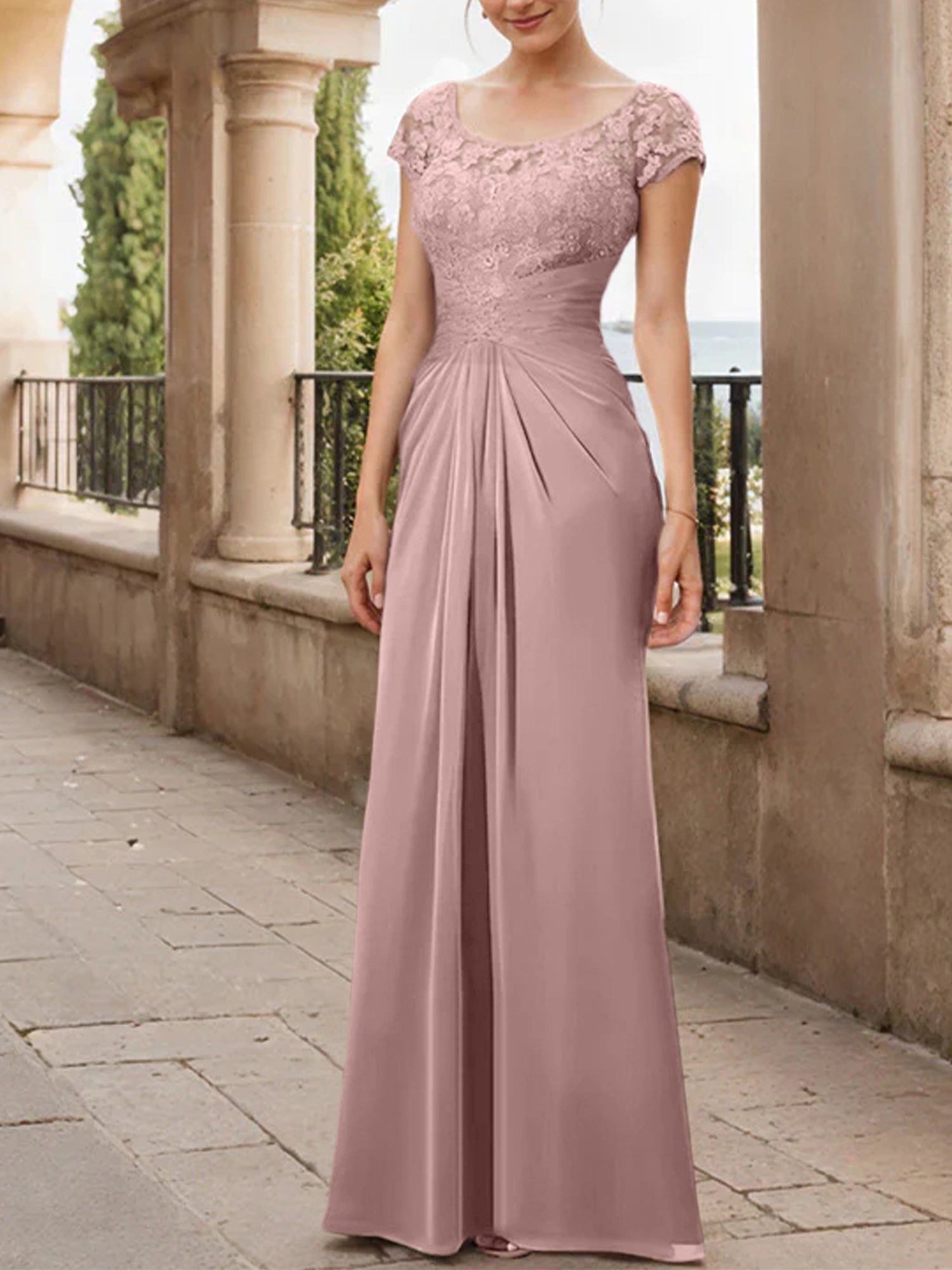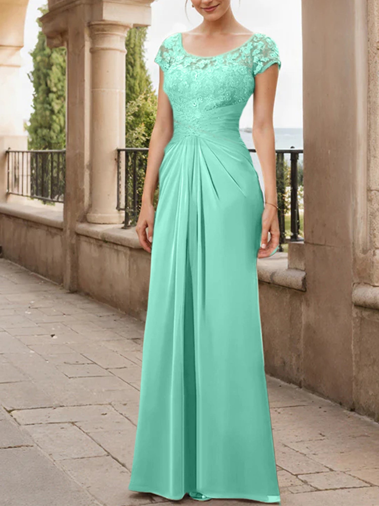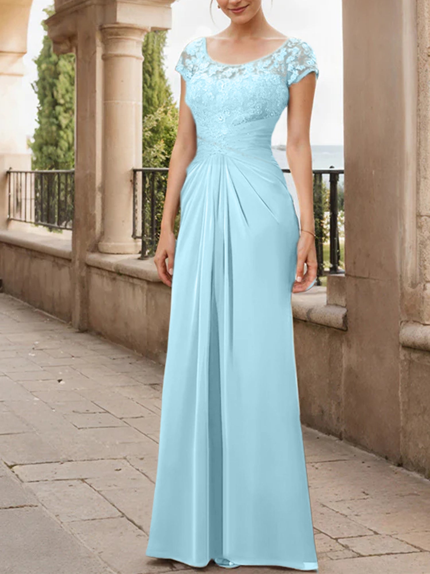 • Sheath/Column Scoop Floor-Length Chiffon Mother of the Bride Dresses With Lace Ruffle