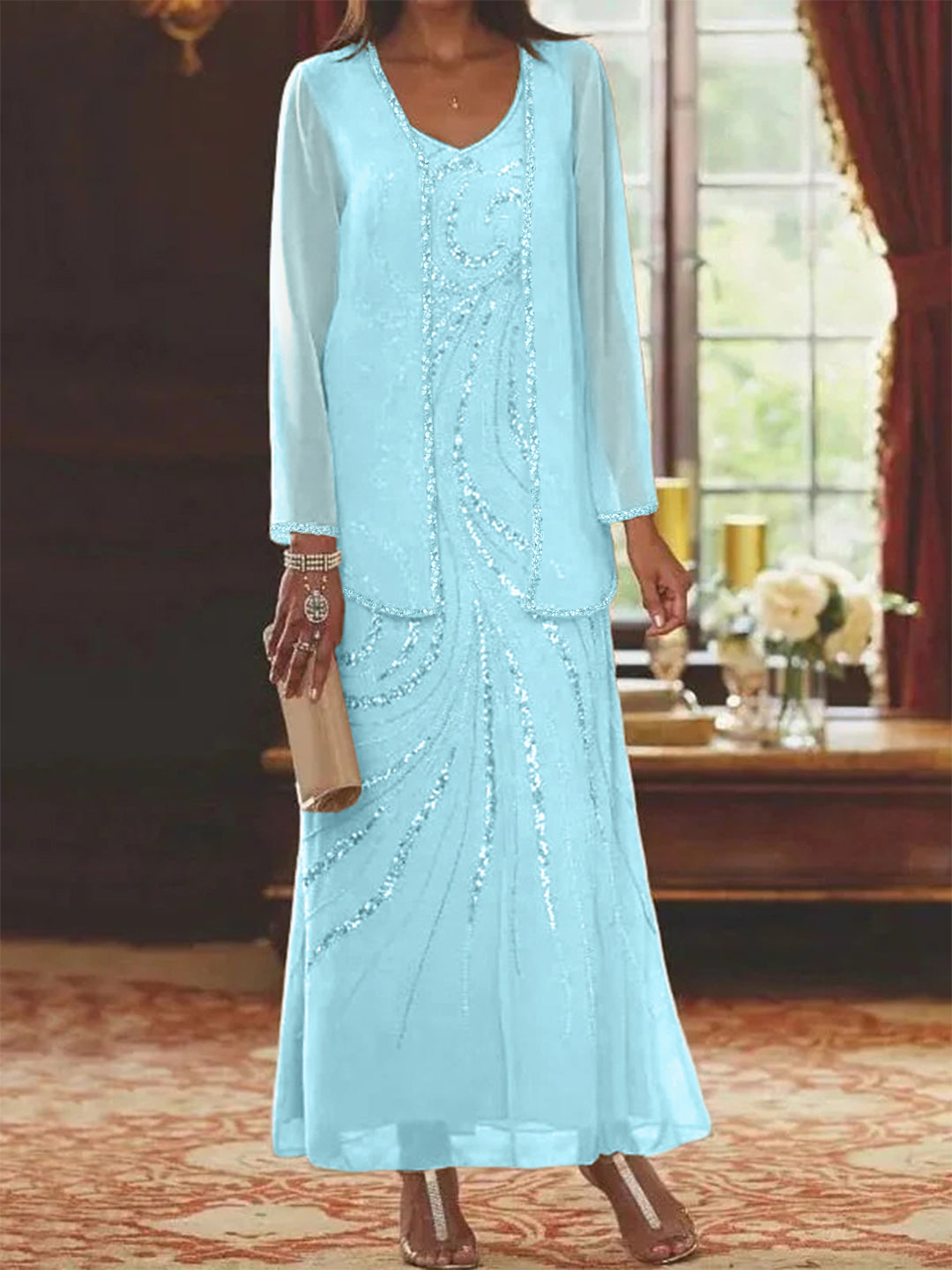 • Sheath/Column V-Neck Ankle-Length Mother of the Bride Dresses with Jacket & Sequins